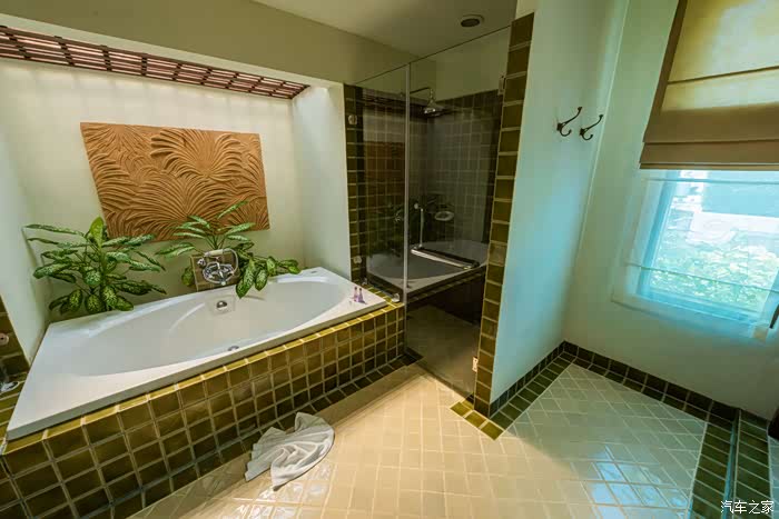 房间也比较大,有浴缸、单独的淋浴间。