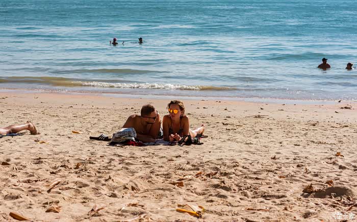 海滩上晒太阳的老外特别多,奥南海滩的沙不是特别干净但沙质细软。