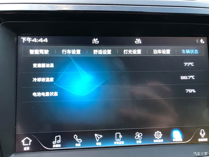 车辆状态,可以随时查看车辆的变速器油温、冷却液温度和电池电量