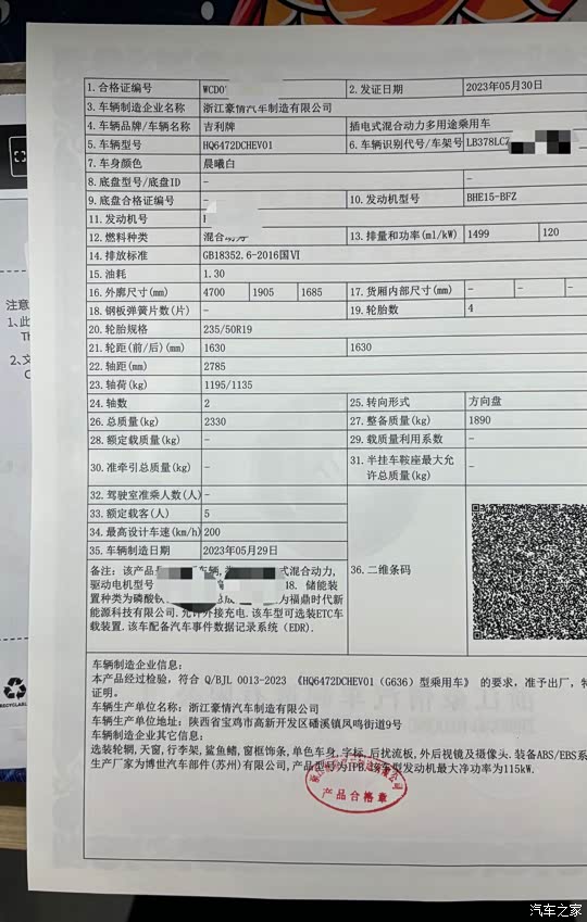 30号给我发了车辆合格证,确定了车辆