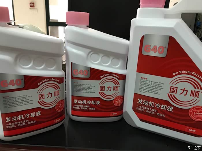 巴斯夫G40冷却液,粉红色液体,第四代SI-OAT冷却液,对铝合金发动机保护性更好。之前换的百事通2100CN绿色变成了土黄色,水温升温倒是正常,楼主目前已更换为G40冷却液。