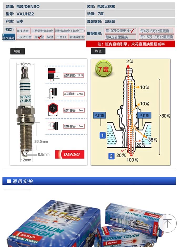 电装VXUH22依铂金火花塞,0.4mm极细依金中心电极,侧电极白金晶片焊点耐久性很高,内置5K欧姆的高电阻抗干扰。日本本土销售产品为绿色包装,国内产品为蓝色包装。群友反应此款火花塞动力表现异常出色,不过价格较贵。