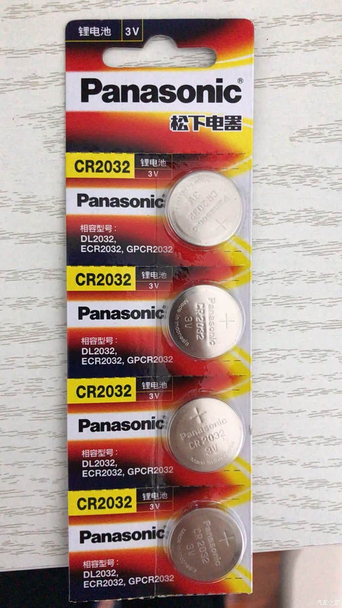 松下CR2032 3V纽扣电池,印度尼西亚制造,原车钥匙电池也是这一款,楼主2年9个月的时候无钥匙进入偶尔拉不开门,自己动手更换后,无钥匙进入恢复正常。