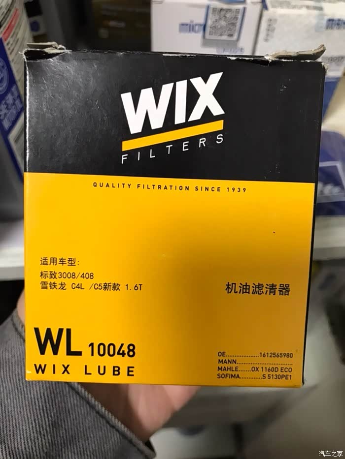 WIX维克斯WL10048,经论坛CCChh1推荐得知此型号,此机滤使用含有合成纤维的塑化纤维素滤材,过滤效果很不错,推荐大家使用。
