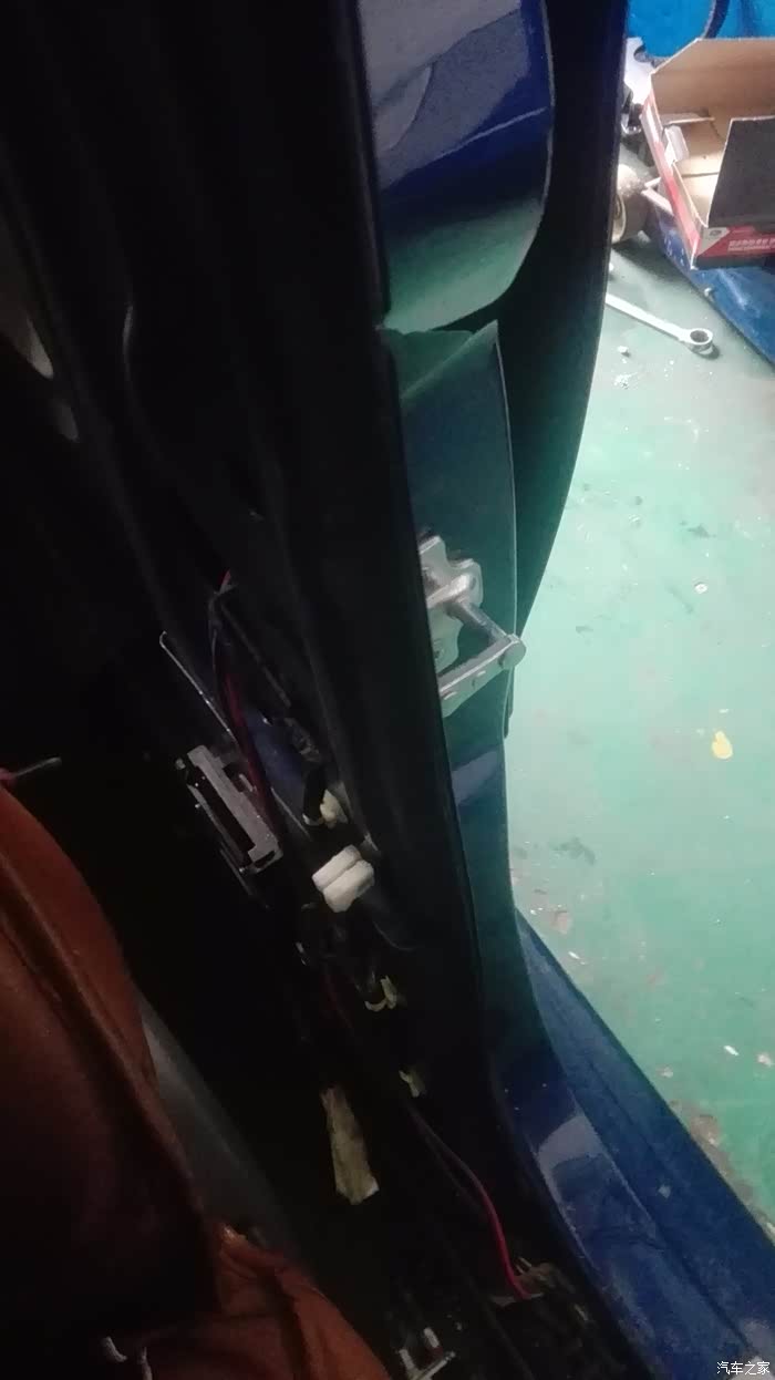 继续拆!照片不大清晰,穿过立柱中间的洞洞,用细铁丝绑着电线穿进后门的软管