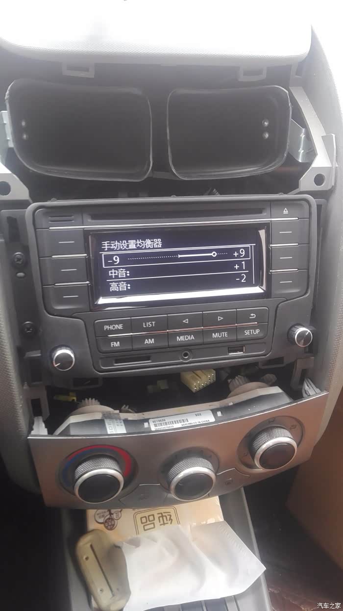换上大众CD机试试,带面框倒模的,插头也改好了,傻瓜插头,直接对插没技术含量。先试试机,没问题再接线!果然蛮好,音响效果明显提升