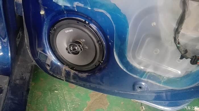 左后门安装完效果,运气不错的就是,随便拿了一对6寸喇叭,还买了一对免打孔改装垫回来,结果安装发现喇叭和车门螺丝孔完美对上,不用打孔,也不用改装垫,乐!