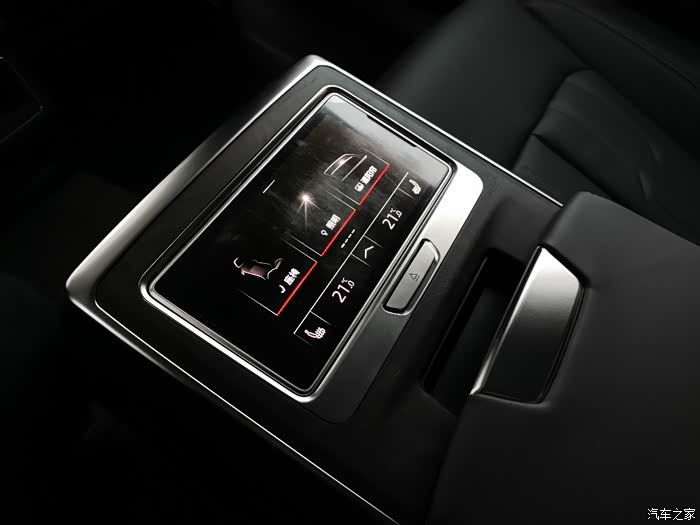 尊享的后排有一块平板,驾驶舱的大部分功能都能在上面进行控制,因为空调也在这上面控制,所以扶手箱后面就没有屏幕了