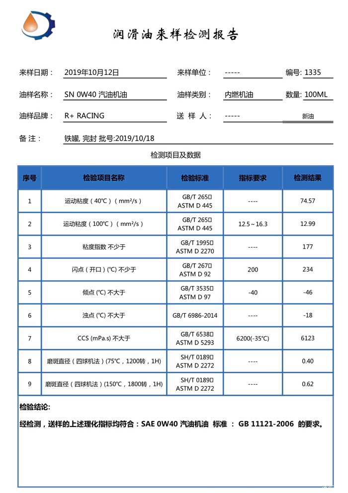 机油送检第136篇-R+RACING与帕克龙0w-40