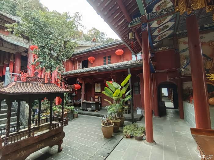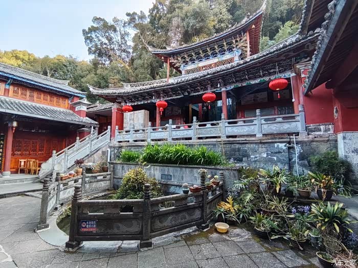 寺庙依山而建,层层叠叠,布局井然有序,错落有致,工艺精巧细腻,庄重美观。