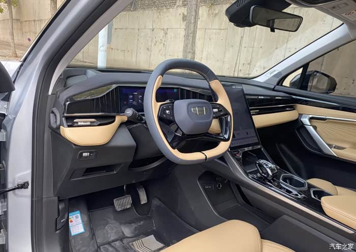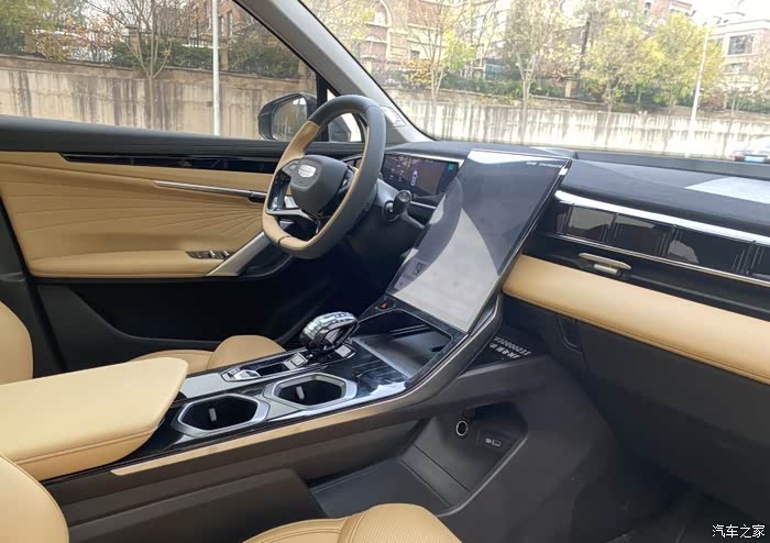 内饰,博越的L内饰做工用料都很好,摸得到的都是用软材质包裹,看着也很上档次,摸着也舒服,方向盘的大小很合适,而且方向盘功能也很多,中控的功能也很多,用着也很顺手。座椅的包裹性也很好,不管是开着,还是坐着也都舒适。