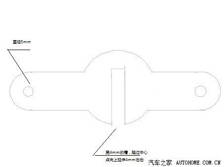 螺丝孔要求为5mm左右,然后在大圆的中间加工出宽4mm左右的槽(槽是为了让摄像头的电线通过),要越过中心线向上3-4mm左右,然后把买来的摄像头沿槽顶放在上面,摄像头和两个孔需处在同一条直线上。