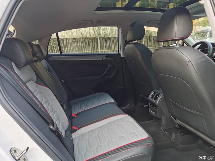 绗缝设计的拼色座椅,很符合人体构造,坐上去也是很舒适。但隔音一般般。