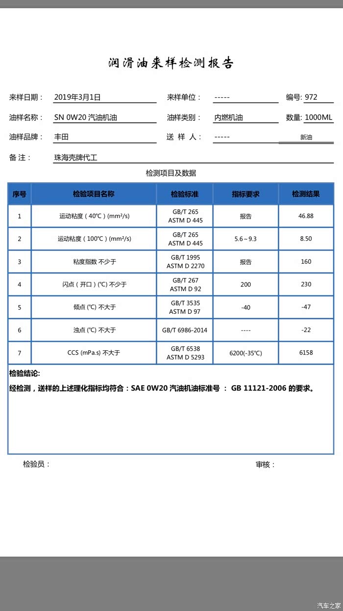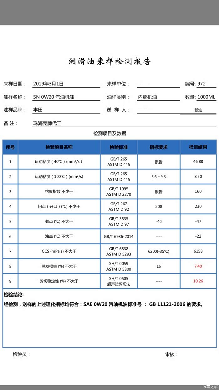 声明:本次检测只对样品负责,样品由kxjhgj0208提供,来自当地广汽丰田4S店。