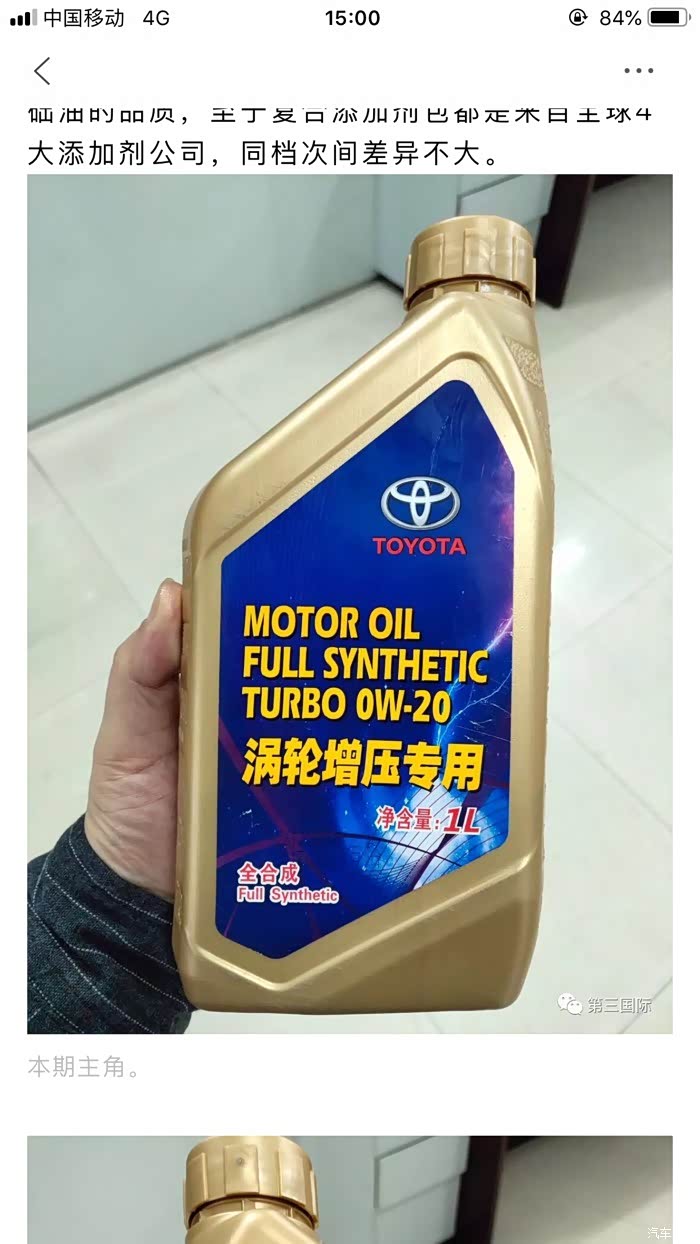 一汽丰田的涡轮增压发动机专用油,号称纯pao