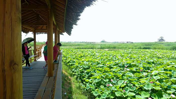 游人到此可观鱼垂钓、温泉沐浴、荷塘采莲、芦荡泛舟、黄河漂流,参与农家乐,野趣盎然,其乐无穷。“万顷芦荡探幽,千眼神泉沐浴,百种珍禽观赏,十里菏塘采莲,一条黄河漂流”,构成了一幅和谐的自然生态美景。