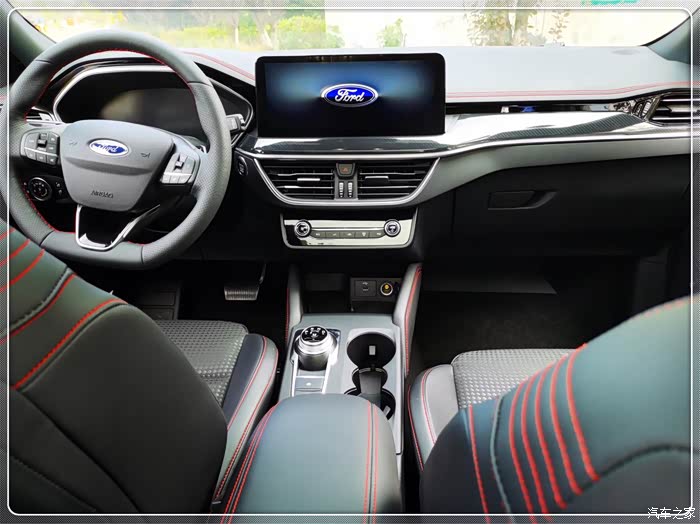 车内内饰做的也不错,红色缝线加上悬浮式中控屏,科技感强不说,运动感也不错。