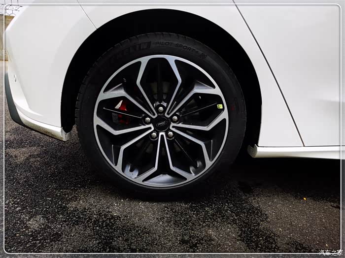 车子的轮毂设计的也很好看,配备的是18英寸轮胎,在这个级别当中还是非常罕见的,毕竟很多中型SUV的轮毂也就这么大。双五幅的刀锋设计组合起来就跟一朵花一样,看起来很有美感。最让我感到惊喜的是车子的轮胎竟然是米其林PS4的,强调性能的同时舒适性也很好,行驶的时候有着很不错的静音效果,而且里面还带有红色卡钳,运动基因很强大。在轮胎上就能看的出来福特的用心,虽然车子定位运动,但是尽可能的让人们在乘坐的时候也舒适一些,真材实料的都能用。朋友的大众CC都没有我的车子静音性好,他总觉得是轮胎的问题,这段时间总是念叨着想换轮胎呢。