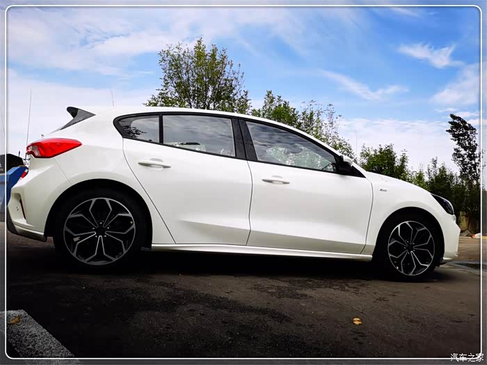 我最喜欢的就是这个角度下拍摄的照片,45度角之下最美,让它看起来跟一个大玩具一样,加入了ST-Line套件之后显得整个车战斗气息十足不说,底盘也低了很多。有句话说的好:“一低遮百丑”!本身福克斯的运动气息就很足了,加上底盘又比别的车子低了那么一小点,视觉效果上更好看了,每次停完车都会在瞅一眼,心里都在想自己的审美真的是到位啊!