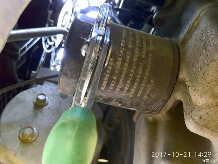 把放油螺丝和滤芯紧好,开始倒油,大约3升那样吧!随时关注机油尺,上下刻度之间就行,因为换完油,去接孩子,所以就再没有拍照,至此,整个换油过程就结束了,各位车友,要换油的不妨考虑一下,自己动手更换,没有难度,既有自己动手的乐趣,又节省了一部分金钱,何乐而不为呢?