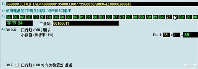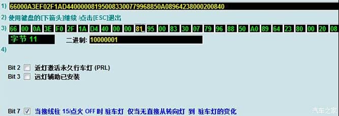 3、找到Bit 7上打勾,保存执行。之后在仪表屏里选“车灯与视野”,可以看到多了一个日间行车灯的选项,打勾灯亮,取消灯灭