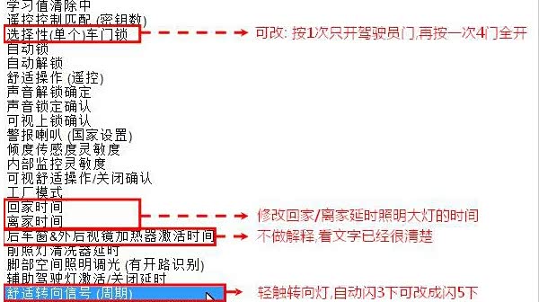 1、车门锁设置-可以修改为按1次只开驾驶员门,再按一次开4门