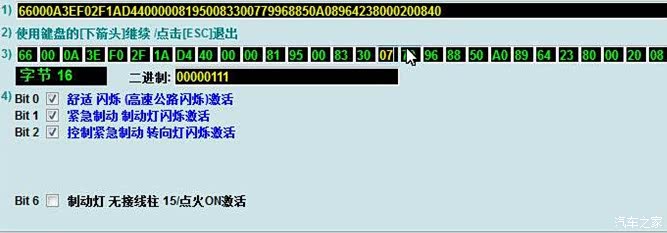 选择字节16,激活紧急刹车双闪,勾选Bit2