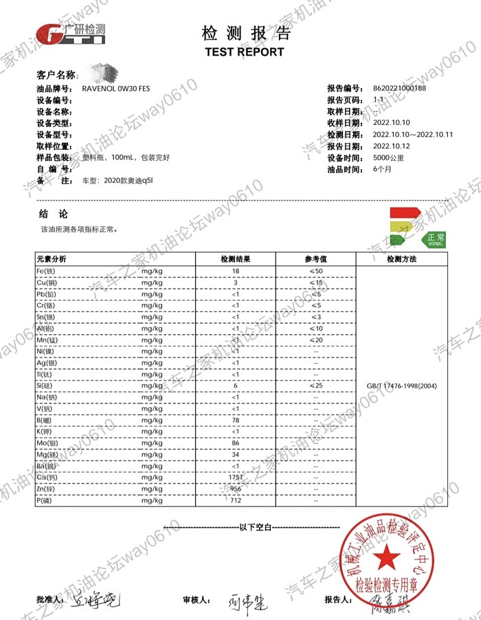检测只对样品负责,样品由论坛车友李先生提供。