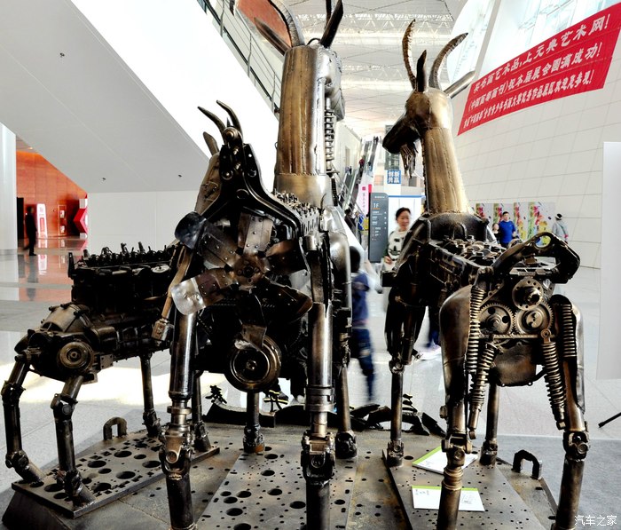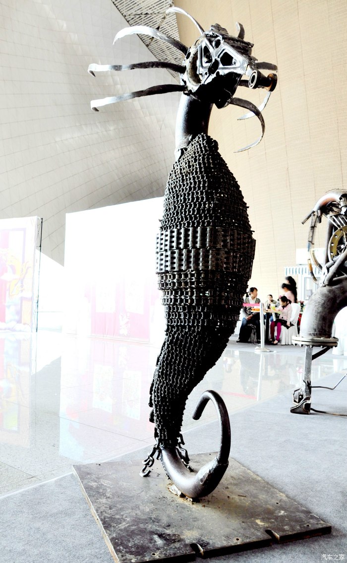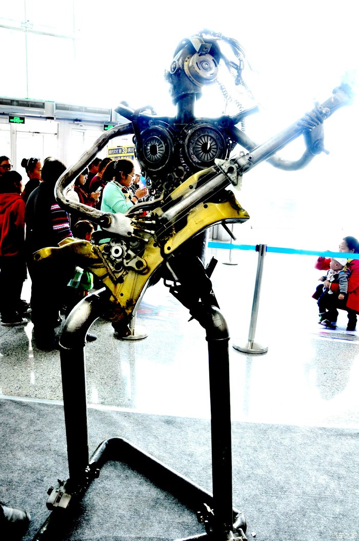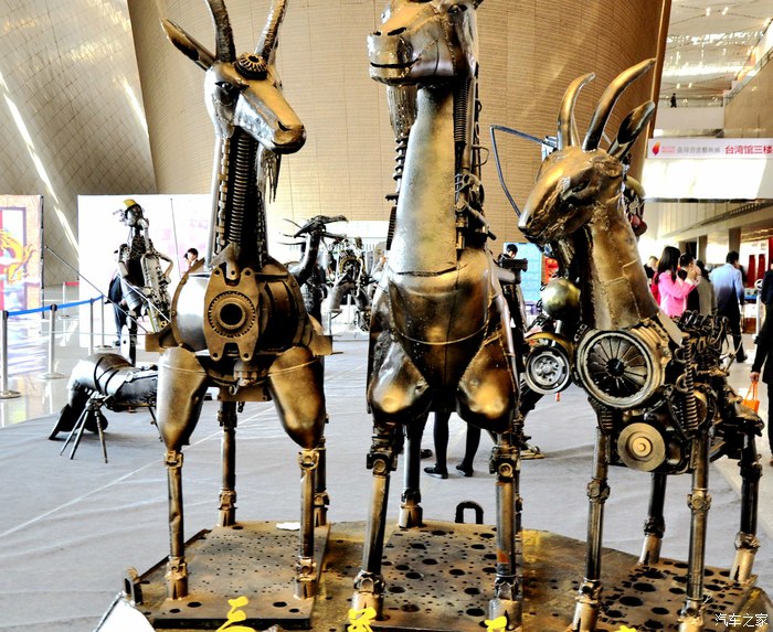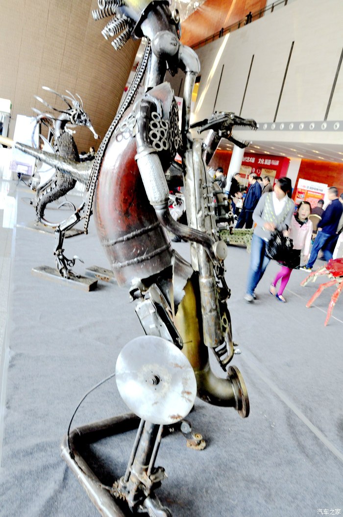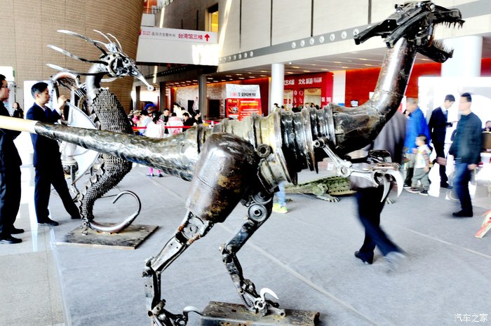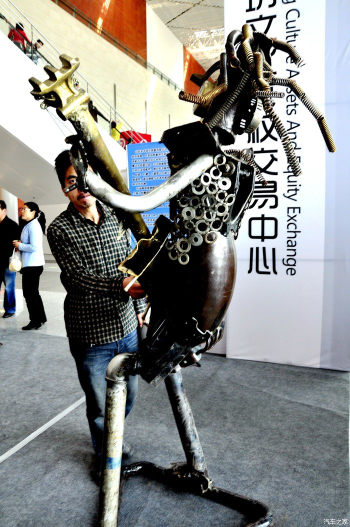 文展会期间,在会展的中心有一组钢雕制品,吸引了众多的游客驻足观赏,一些不起眼的废旧工业原料、汽车配件,经过钢雕设计师的精心设计,变成了一件件具有生命力的工艺品,大赞!