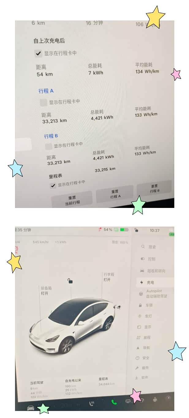 4能耗优秀:特斯拉的三电管理系统绝对是行业标杆,相同度数的电池,特斯拉会有更远的续航。春夏秋三季续航达成率都不错,但电车怕冷,尤其是磷酸铁锂电池,冬天温度一般在零下二到五度之间,开暖气走高速(ap110)续航里程大概在380公里左右(表显里程420公里)。