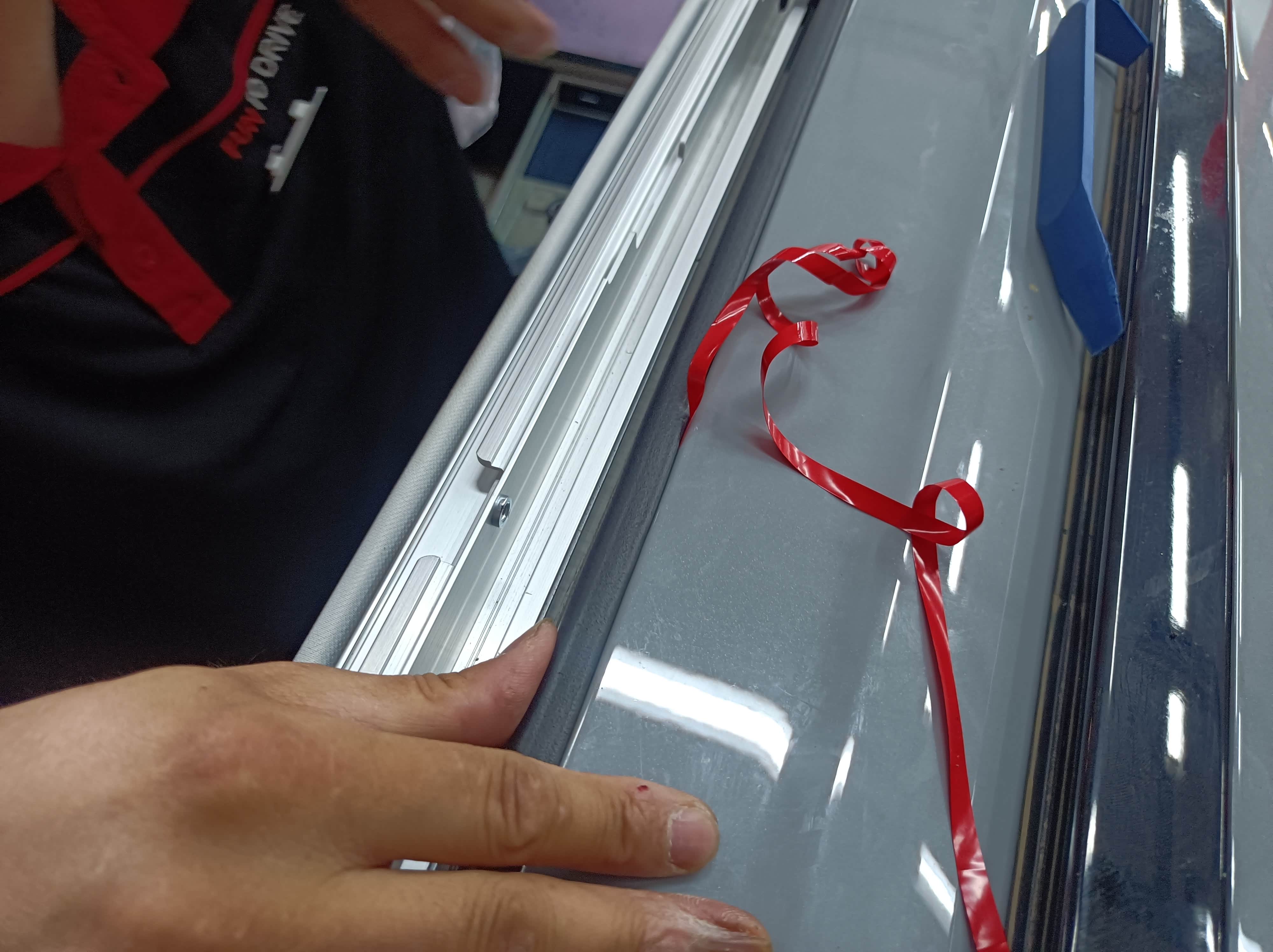 过程中,需要耐心。这个密封条有弹性,不能拉,只能随着橡胶的自然属性,慢按固定。