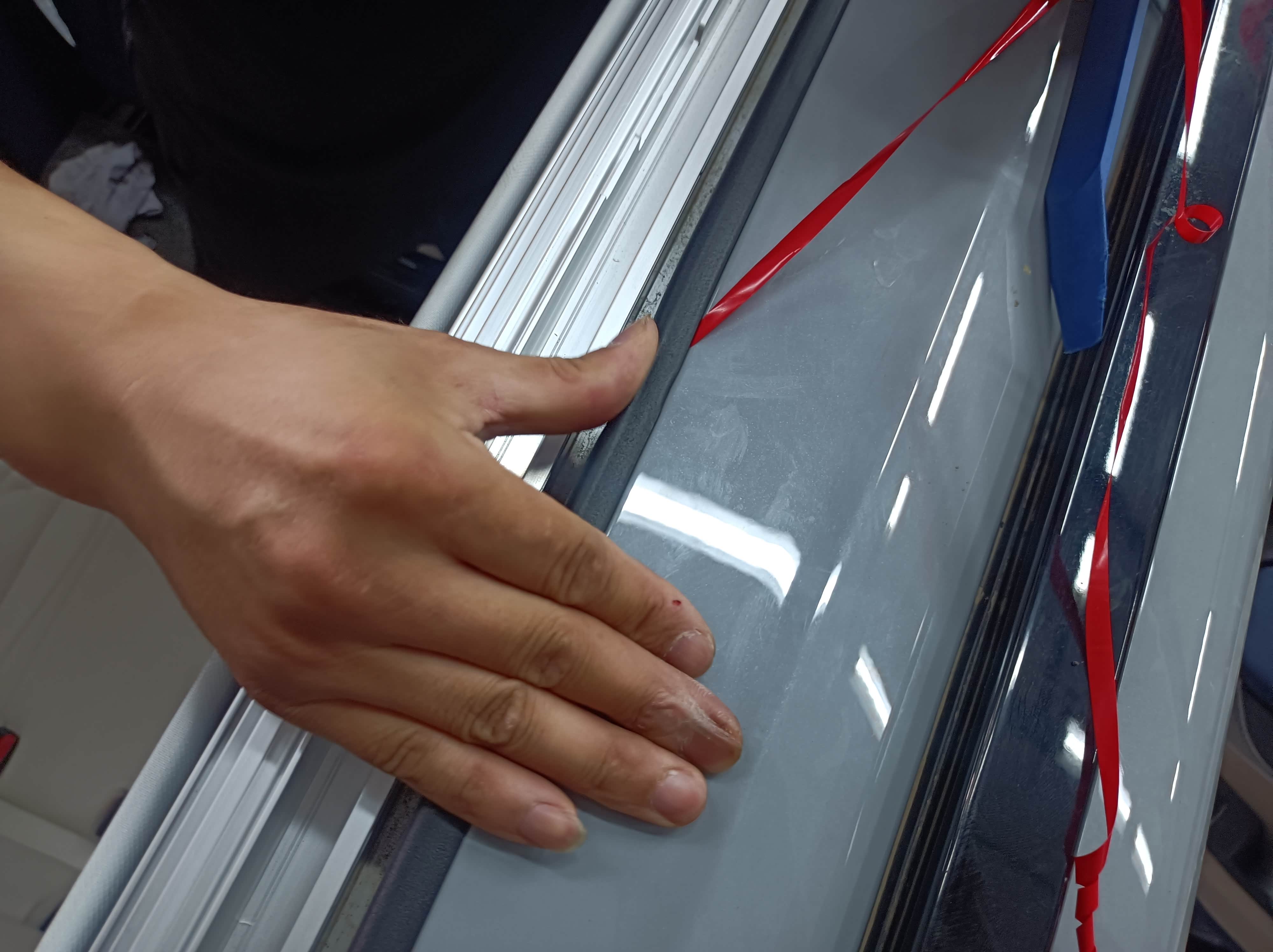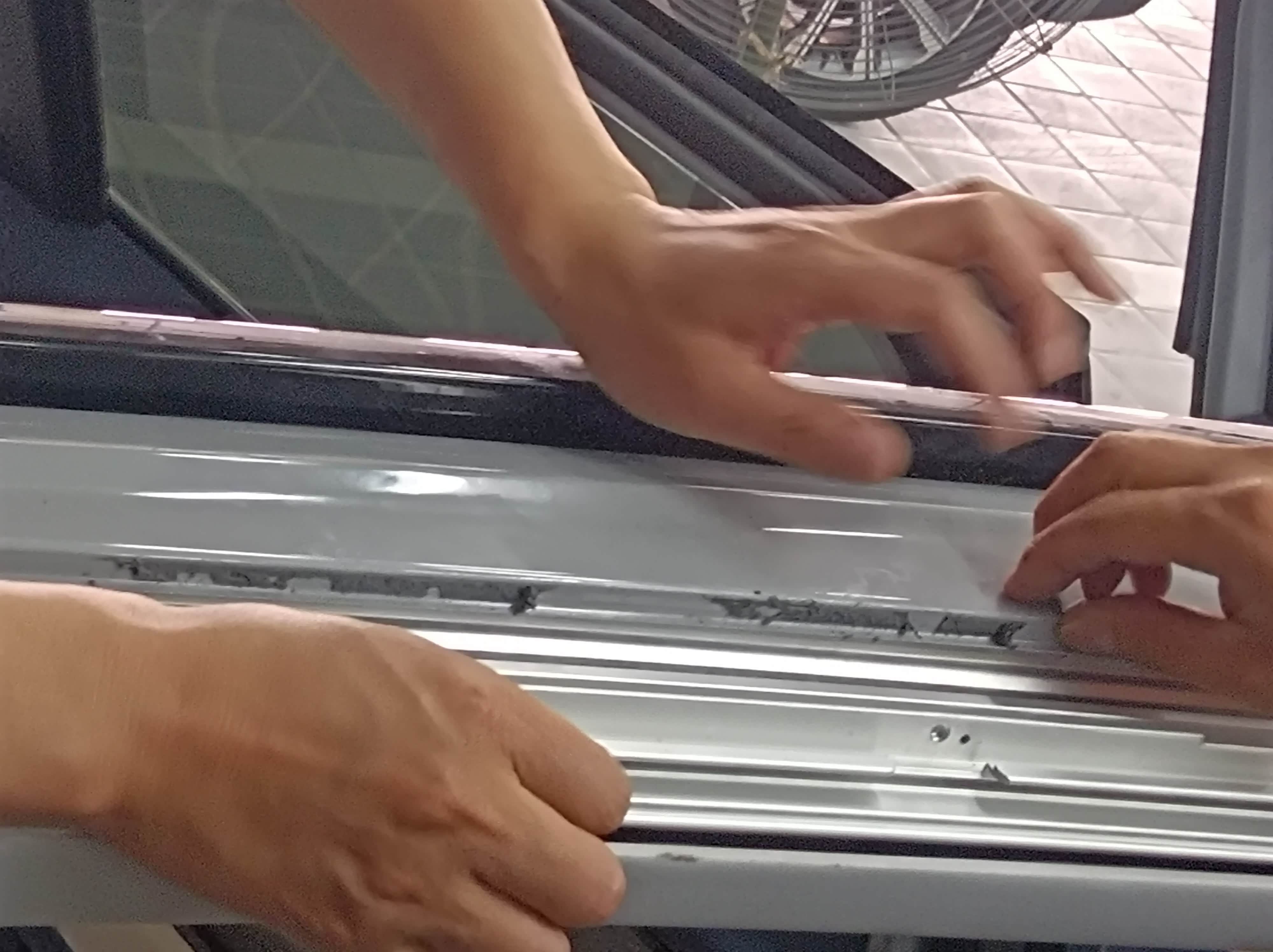 外面粘好了,里面再看看。确定没有问题,安装玻璃按照拆时候的倒序安装。