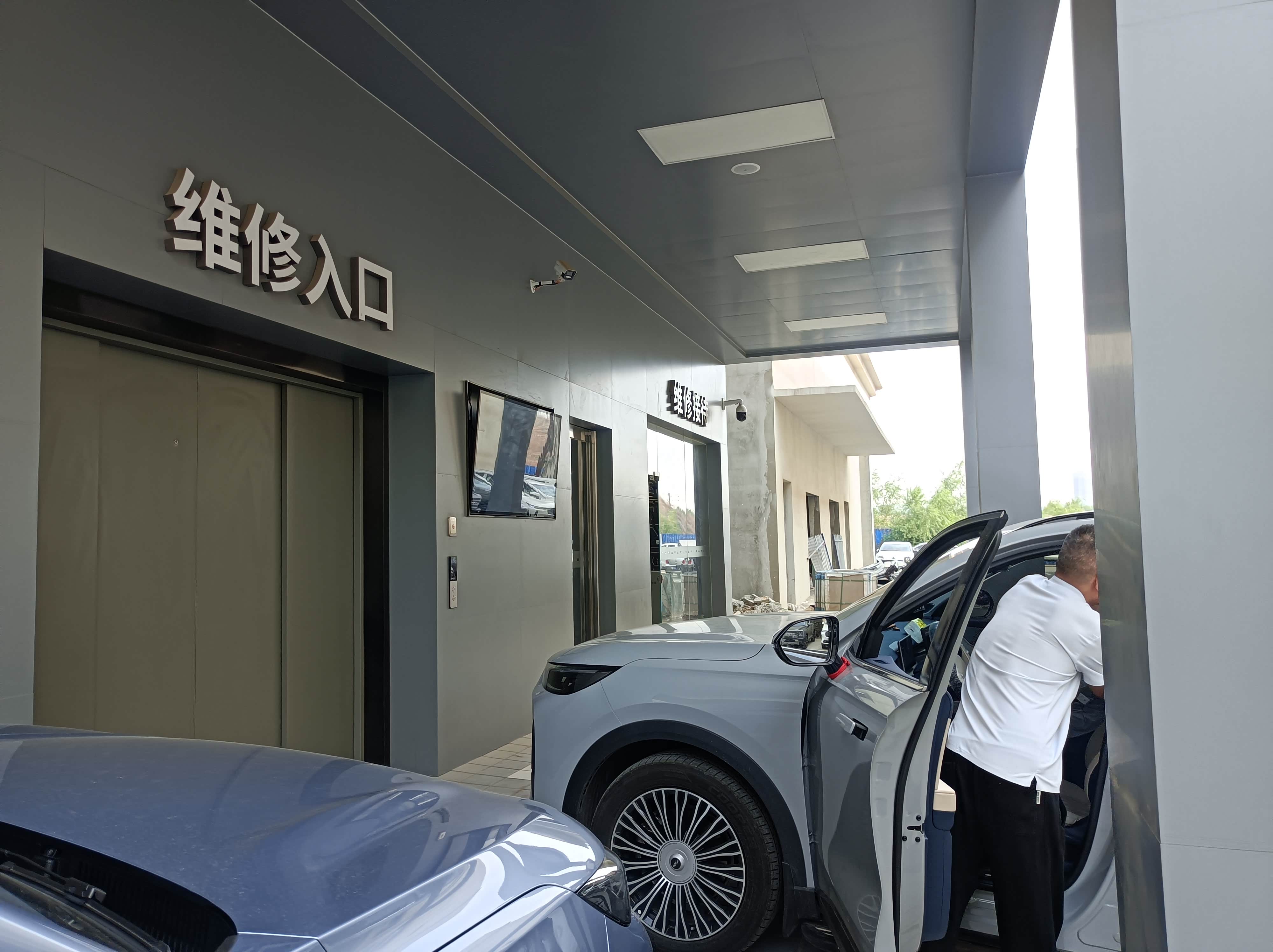 坐电梯到达三楼维修车间。师傅开始进行更换。打开天窗,准备拆天窗玻璃