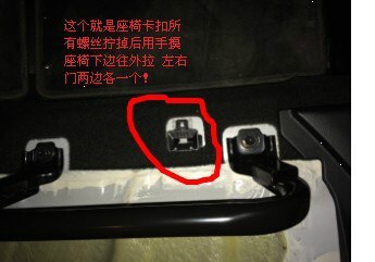 第四步到后排座椅出扣下座椅!座椅两边靠近门出各有一个卡扣往外拽就成!
