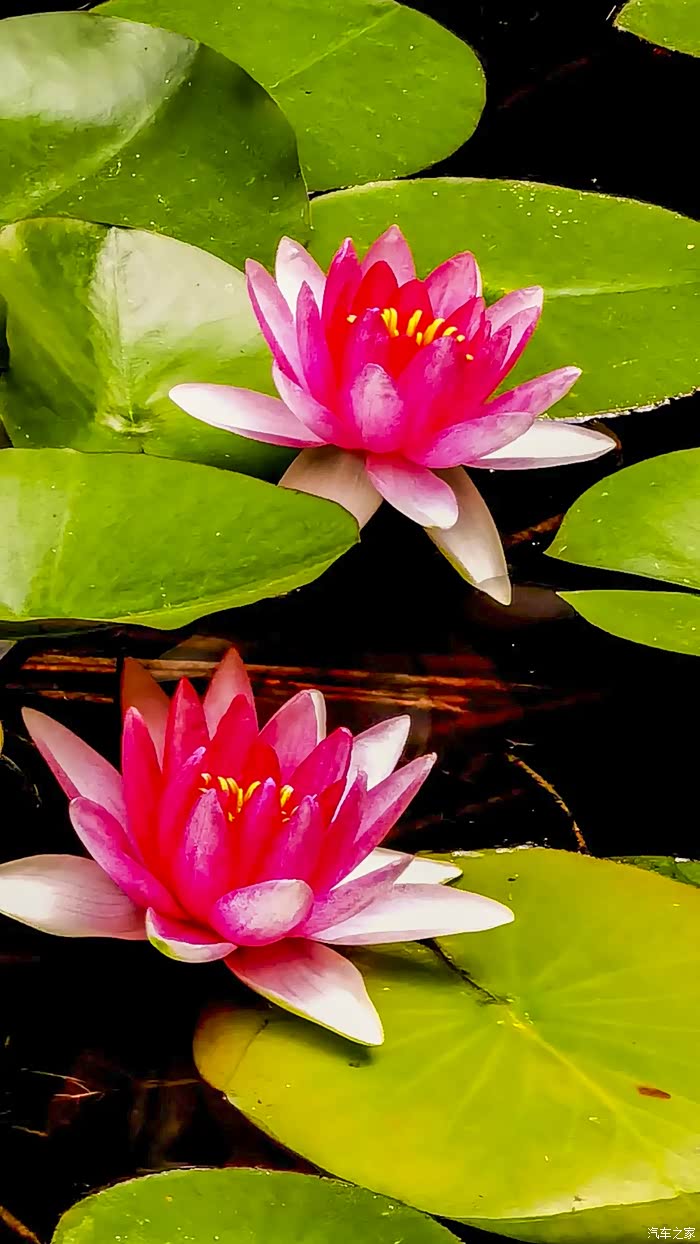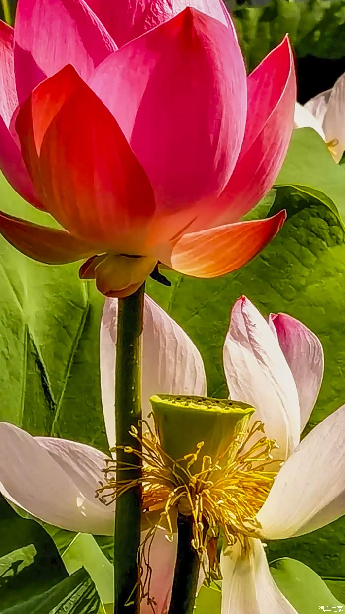 站在一座小巧的拱桥上,眼前便是荷塘。荷塘里的景象终没辜负我满腔的期望:田田碧叶袅袅娜娜,其间荷花亭亭玉立。荷花红的那么妩媚,白的那么无瑕,让人抑制不住发出声声的赞叹,太美了!——毕竟西湖六月中, 风光不与四时同。接天莲叶无穷碧,映日荷花别样红。