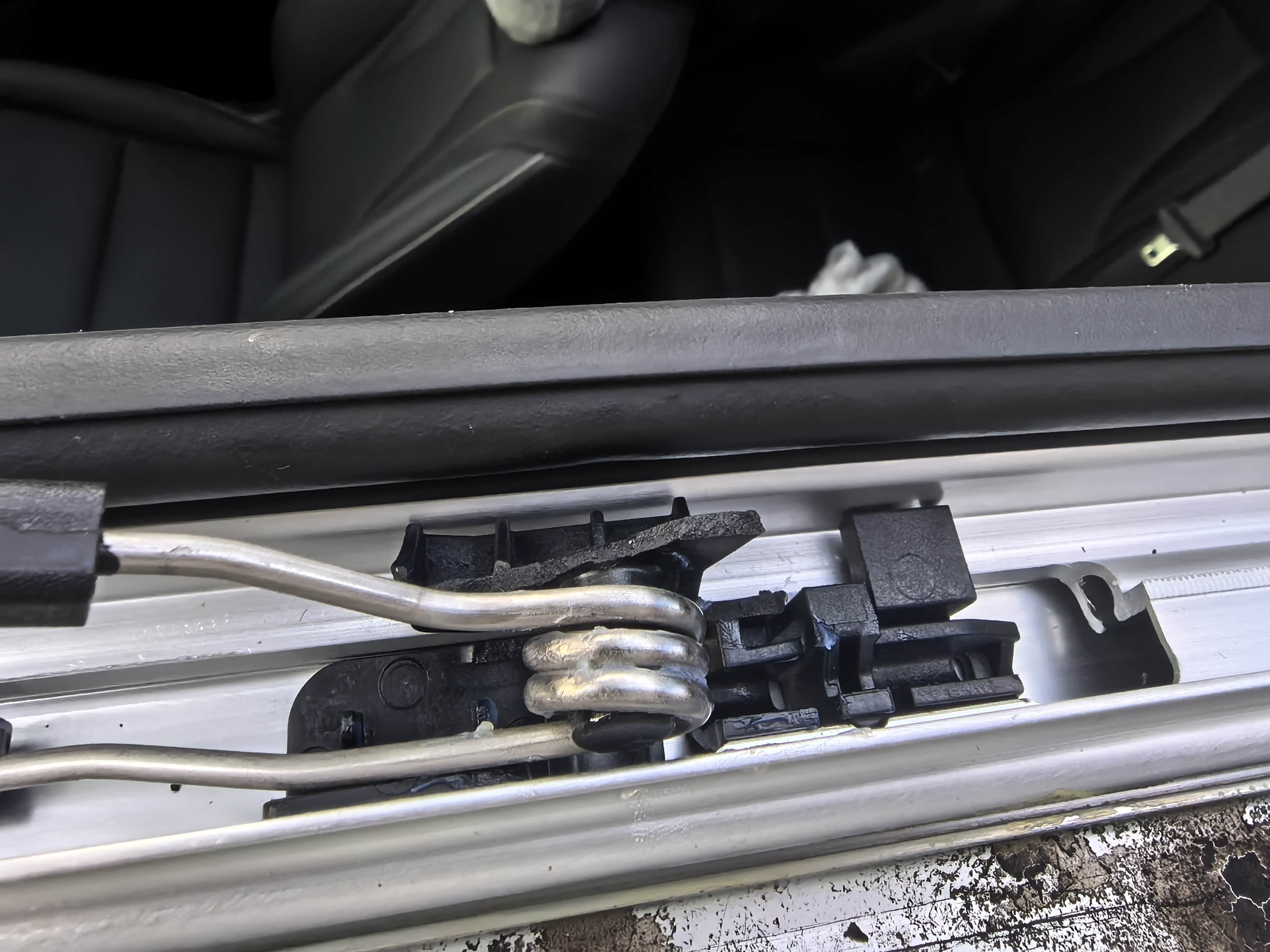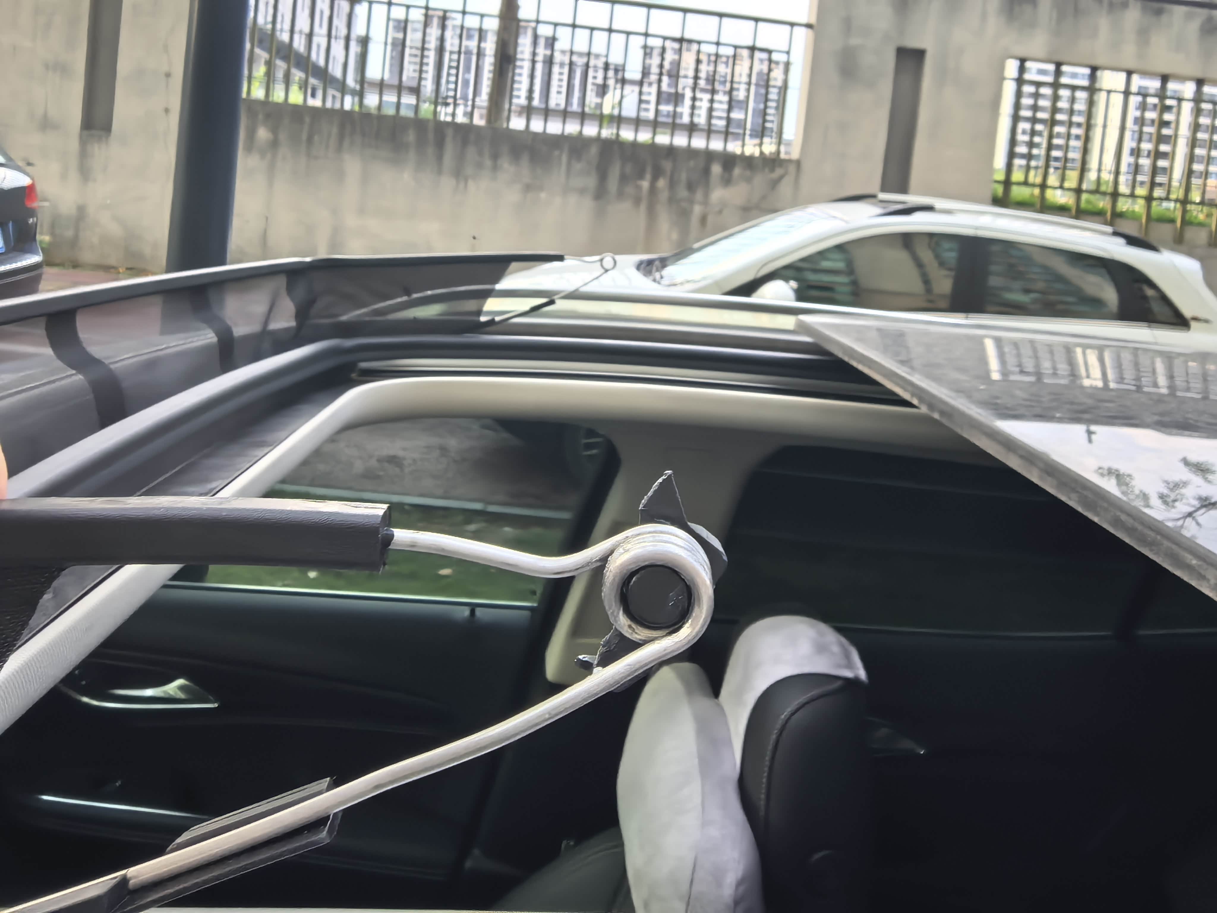 今天打开天窗听到噶拉一声,打开看发现前面天窗网那有个塑料件,两边都有,可以取下来,看截面像断了一样,现在天窗可以正常关闭,我都不敢打开了,大家的是一样的吗?还是真的断了