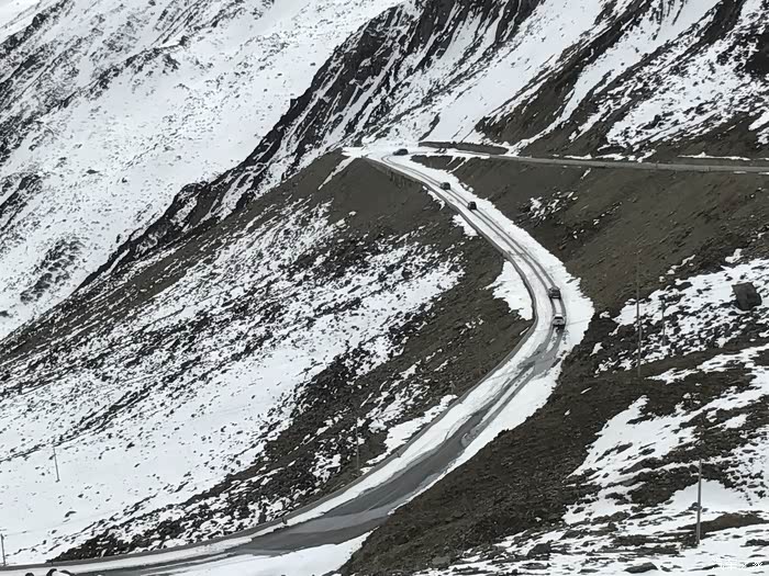 一路上还是有不少人专门上垭口来看雪山。上面那个弯道很滑的。