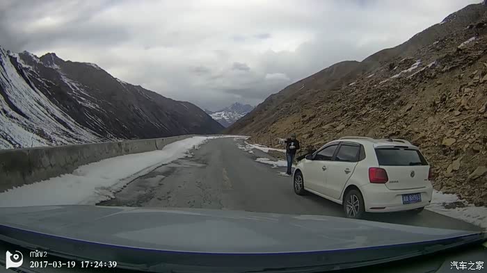 垭口就在车后上面。后面那辆大众车的哥们在玩无人机拍雪景。我的手机拍照片就显得不高大上了。