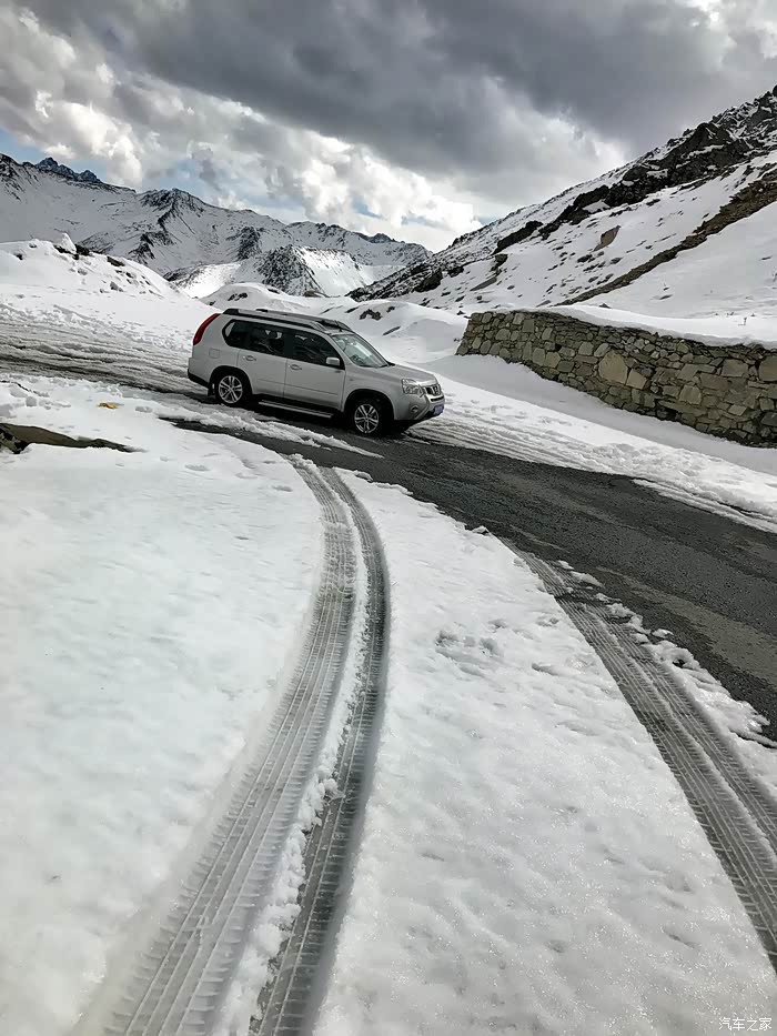 这个回头线弯道,路烂,冰雪很厚。系上安全带,按下自动驻车和四驱模式,慢慢给油,轻松脱困。还故意开在冰雪上面摆个pose拍个照!