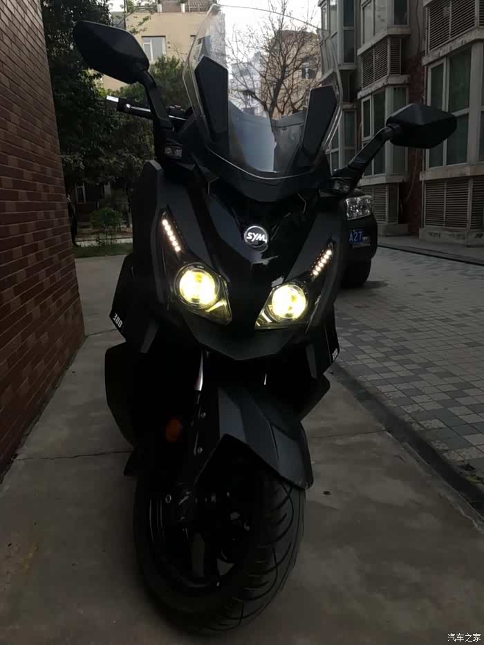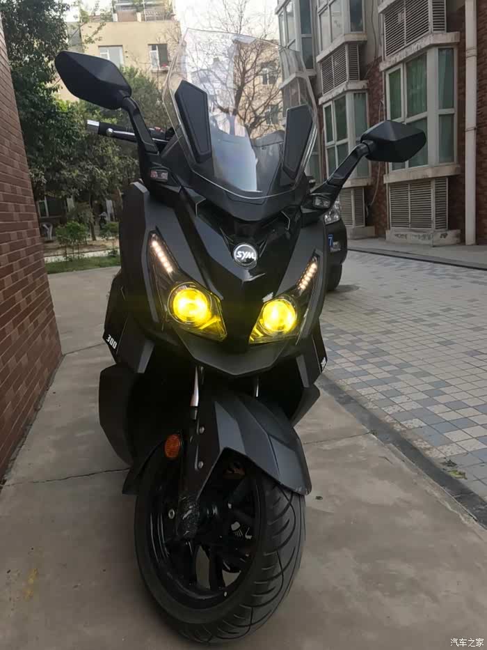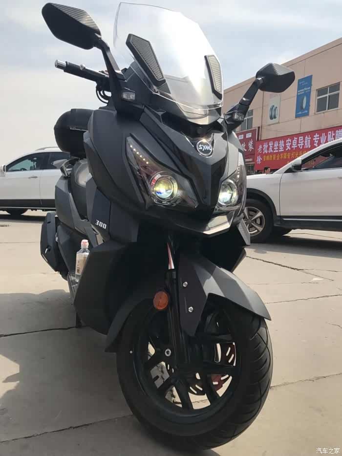 这什么车啊,王总说这是台湾三阳新出的300ml排气量踏板车,他买车时候三阳这款车还未在中国大陆上市,所以推荐我去看看。王总说三阳这款车空间表现更好,能够多放点东西,甚至座舱里能放下两顶全盔哦!更有不同的一些其他配置例如透镜大灯。有兴趣的朋友可以去百度一下两款车的配置不同点。