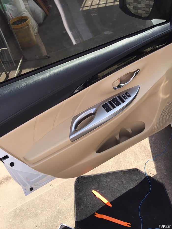按网上流程拆开驾驶座侧的车门,具体流程请自行查阅优酷视频。ps:强烈推荐购买淘宝全套撬板,我买了套14元的,要没它后面装回去时就要哭了