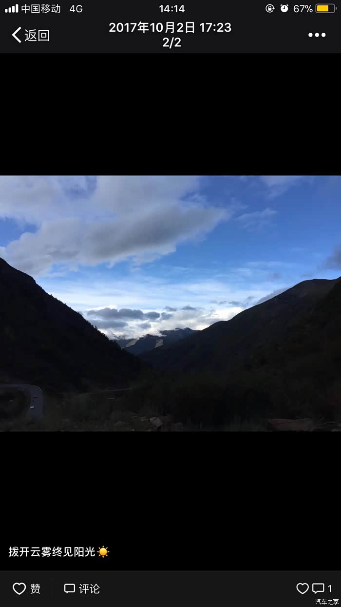 穿过层层云雾终于看见蓝天白云了