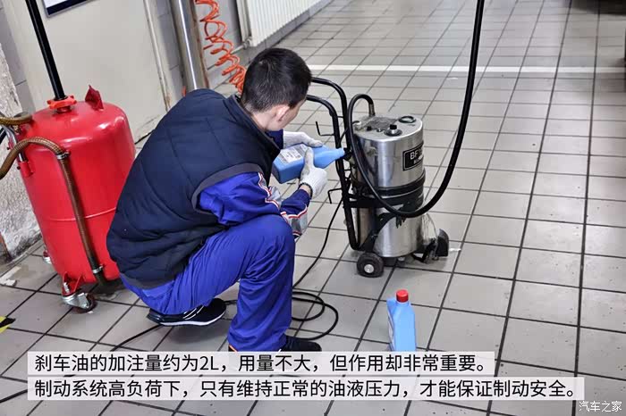 刹车油是个不起眼的项目,很多车主经常忽视它。事实上,刹车油会随着时间的推移而发生轻微质变,其粘度和压力的变化会影响到制动脚感和制动距离。官方建议的更换周期是五万公里,不过考虑到我的刹车使用强度较大,再加上季节的影响,提前换掉会更踏实一点。