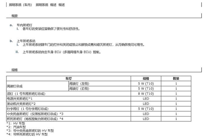 19-21款雷凌 车灯规格表及 前置阅读灯换LED灯操作指引