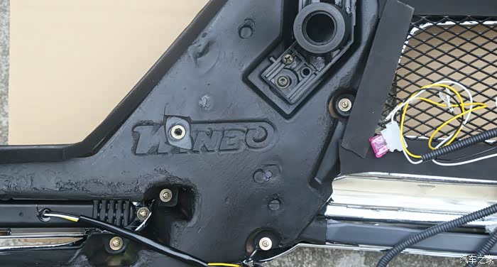 LED灯的线需要从栅格网处穿进去,在引到电瓶旁边