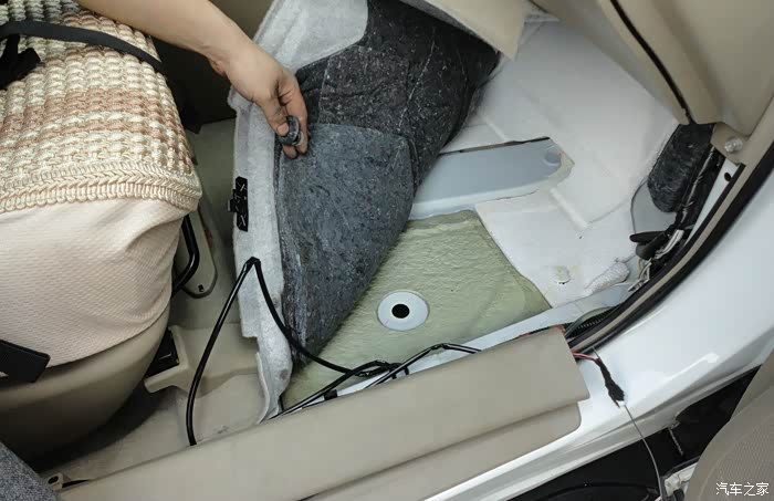 踏板线从副驾胶垫下面一个孔位传入车身内,与车内线路连接