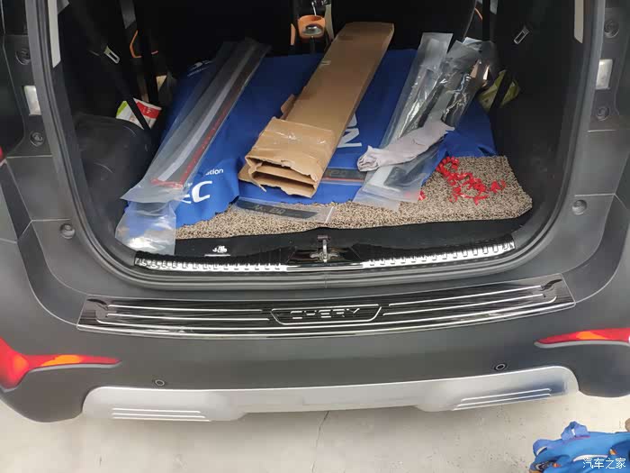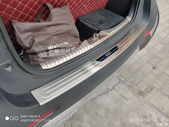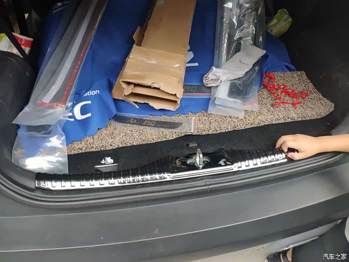 原车光秃秃的,来回拿东西,已经有不少划痕了。