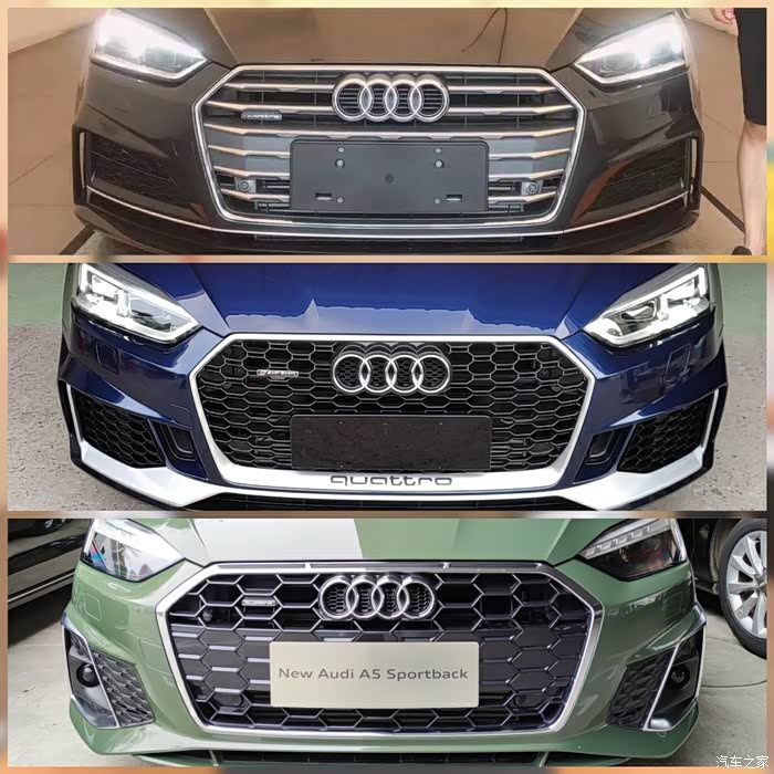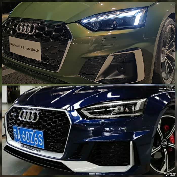 全新的奥迪A5才用了最新的家族化前脸,RS的蜂窝中网也得以下放,好处就是省去了日后的改装,缺点是和S以及RS的区别不明显了(不知这些车主心理阴影多少)。下方的雾灯格栅区域统一标配了ACC假探头,并用一个矩形框起来,这块区域我个人觉得对没有黑包的车主不太友好
