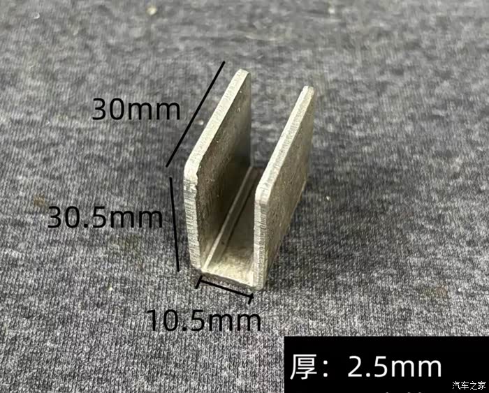 这是买的U型铁件,先用铁皮做一个规格3cm×20cm的U型套入支撑点钣金处,然后用买来的铁件调整好间隙镶入,最后喷底盘装甲以防生锈。