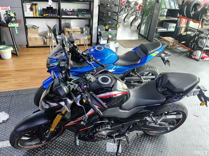 DR300和GSX250摆在一起,我还是觉得仿赛的造型更好看,我更喜欢。